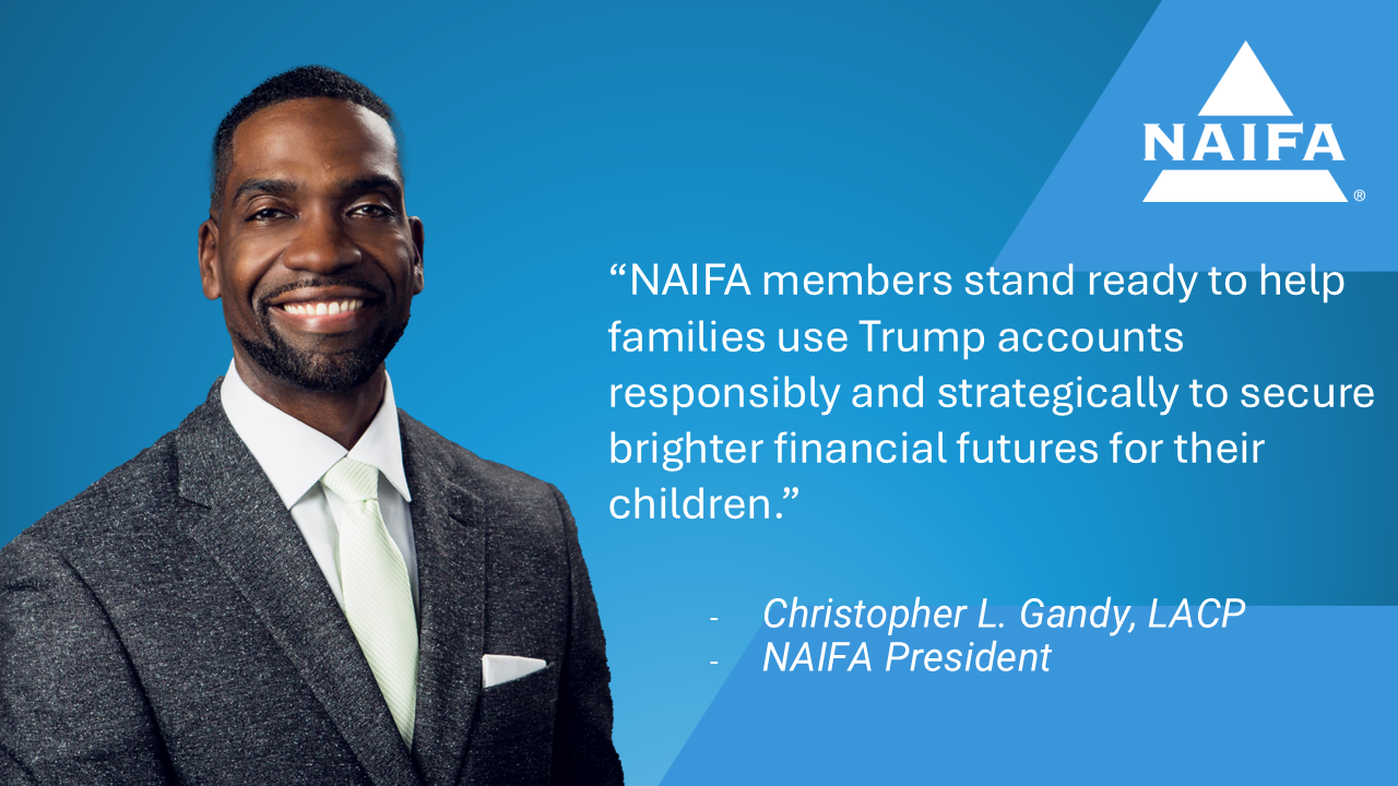 “Trump Accounts represent a meaningful opportunity to promote early savings and financial security from birth,” said NAIFA President Christopher L. Gandy, LACP. “But accounts alone do not build wealth; relationships, education, and disciplined guidance do. NAIFA members stand ready to help families use these accounts responsibly and strategically to secure brighter financial futures for their children.”
