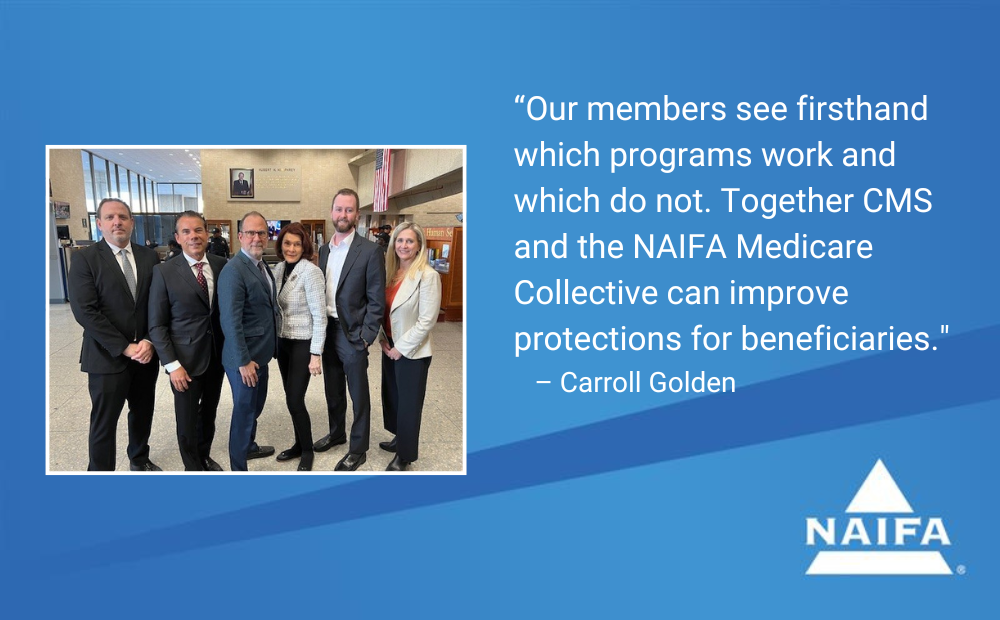 “Our members see firsthand which programs work and which do not,” said Carroll Golden, Executive Director for NAIFA’s Knowledge Centers and the Collective. “Together CMS and the NAIFA Medicare Collective can improve protections for beneficiaries in a way neither one can separately.”
