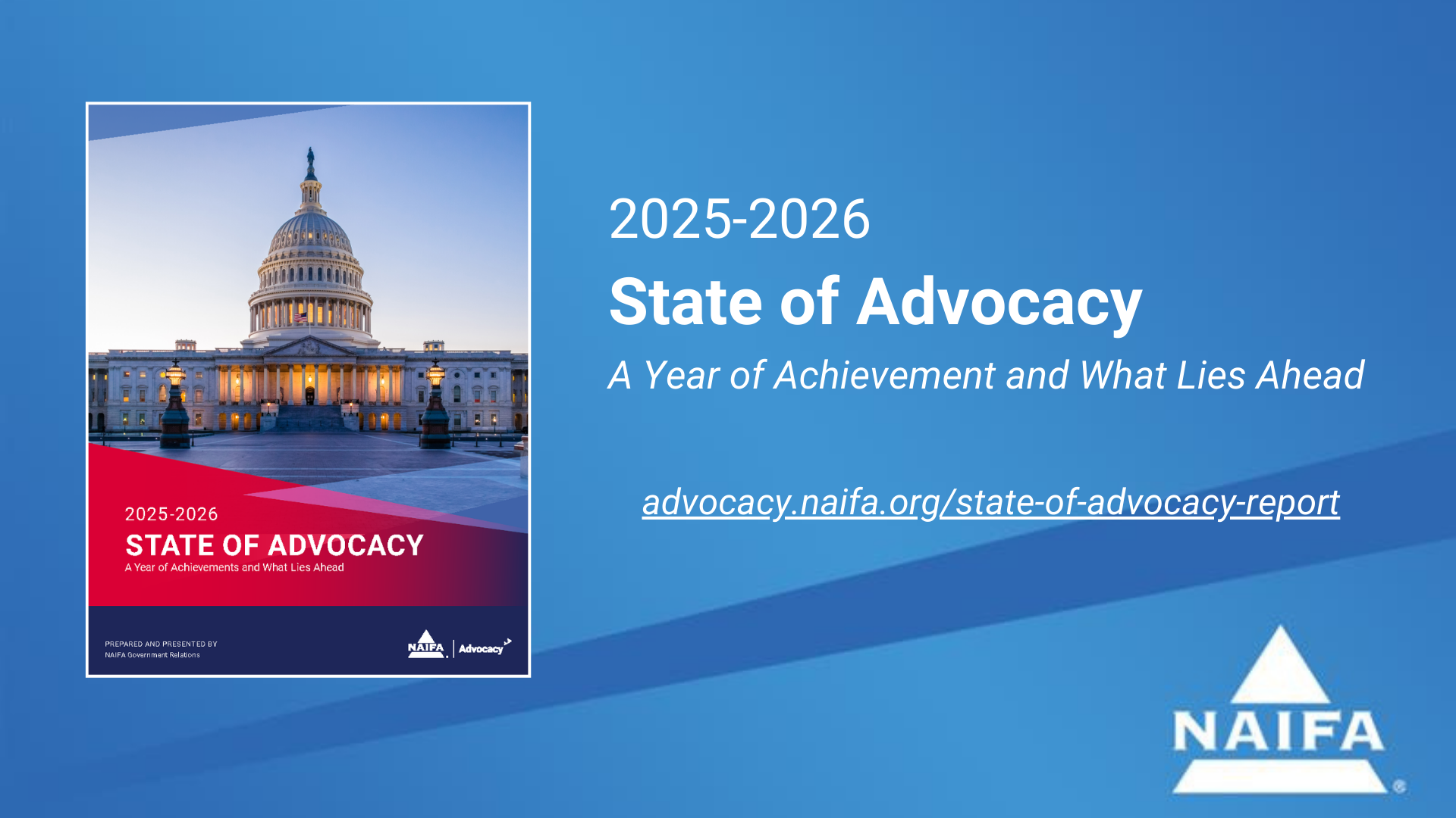 As the leading grassroots advocacy association for financial professionals on Capitol Hill and in ever state capital, NAIFA serves as the leading advocacy voice for insurance and financial professionals. Our newest publication, 2025-2026 State Of Advocacy: A Year of Achievement and What Lies Ahead, provides a deep dive into the advocacy work NAIFA has done and the policy issues we are currently facing. It is a good companion piece to another recent NAIFA publication, NAIFA Community: Members in Action, which provides profiles of several NAIFA members who have made a difference with their advocacy work.